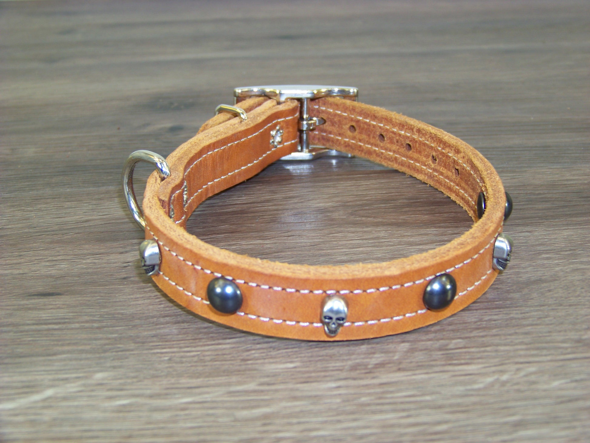 B) SALE - Durable Latigo Leather Dog Collar- 3/4" Wide- Skull Concho W/ Dome Rivets.