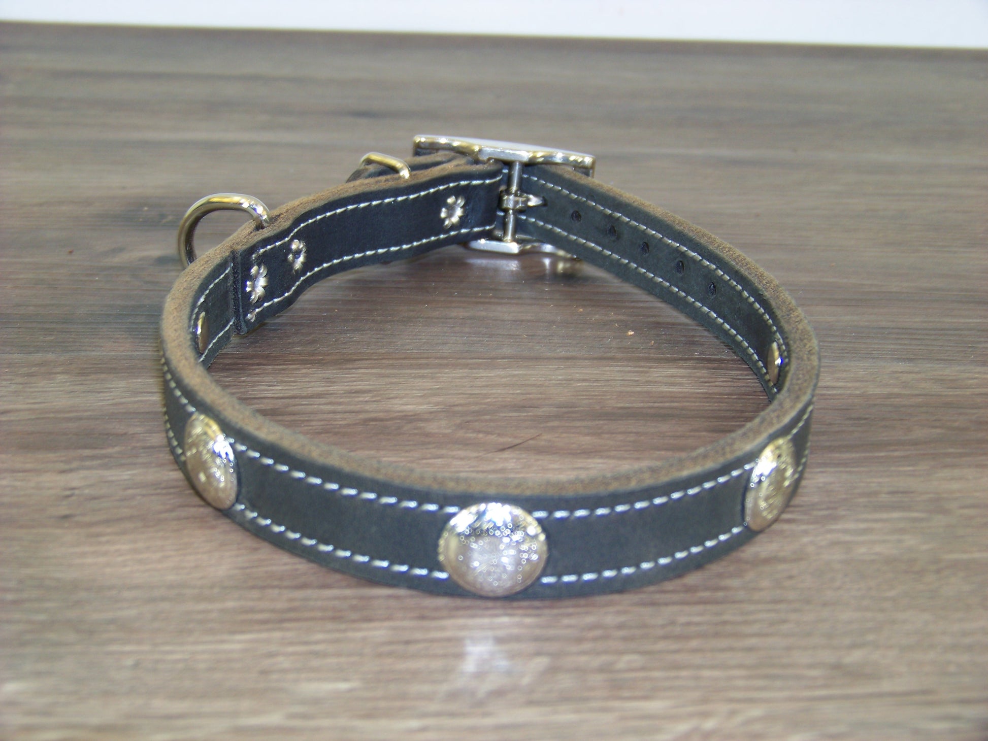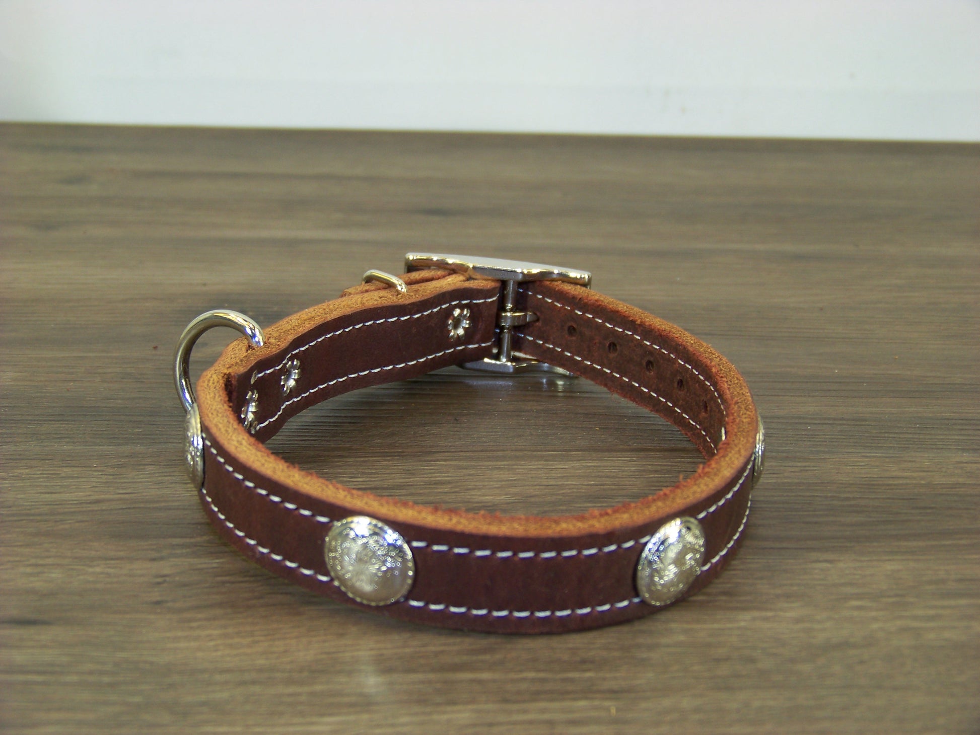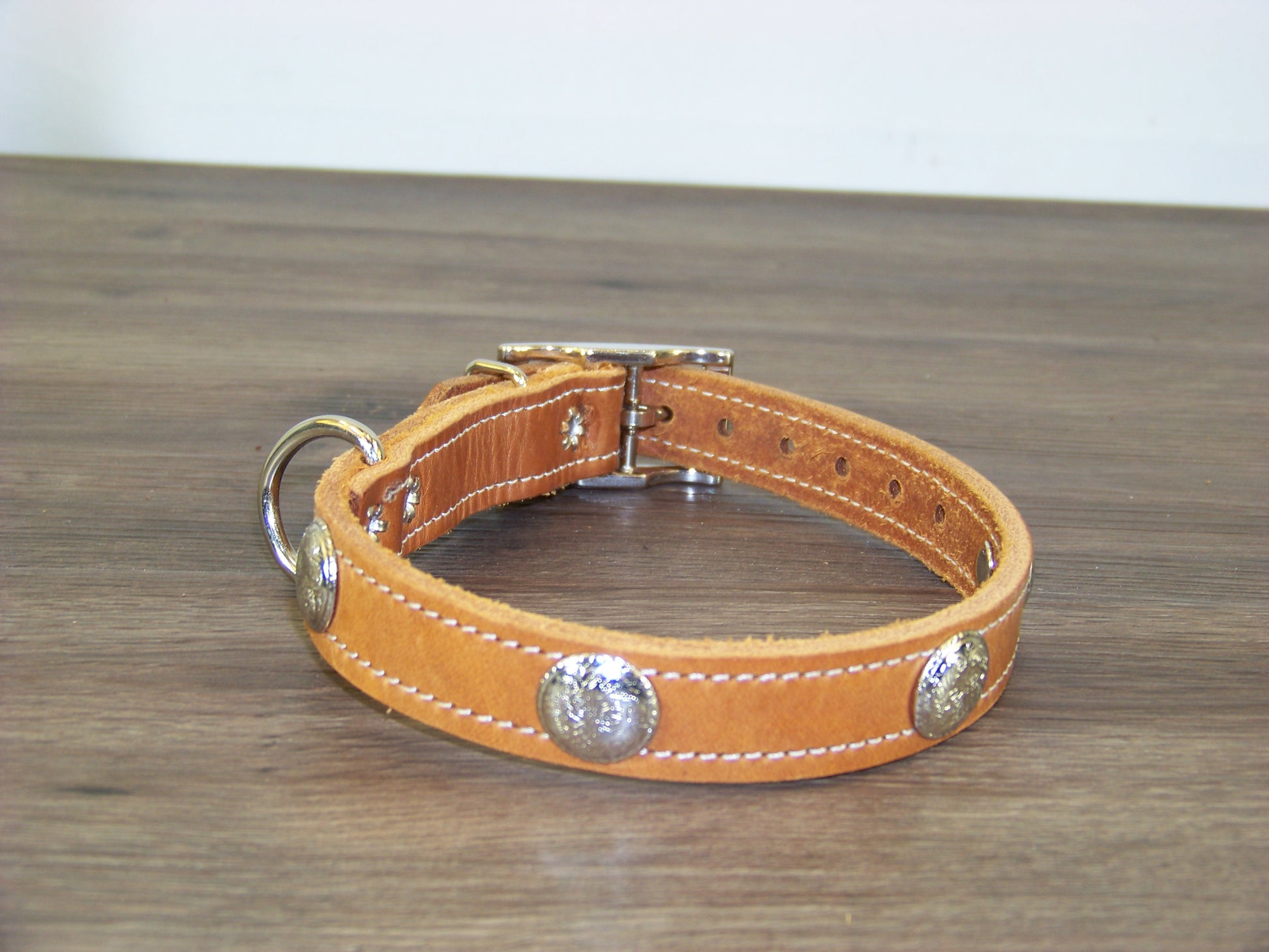 B) SALE - Durable Latigo Leather Dog Collar- 3/4" Wide- Stainless Western Concho Accents